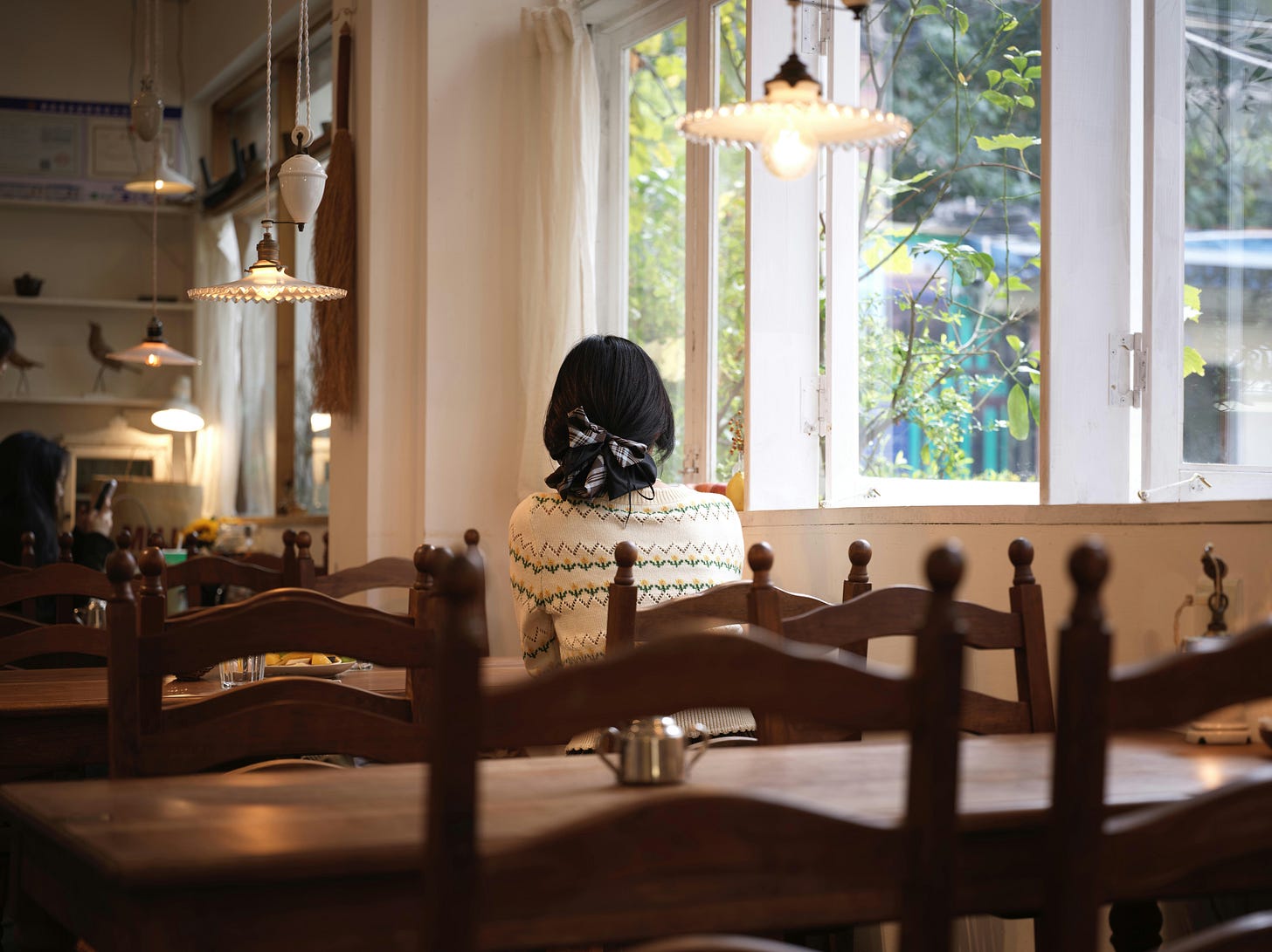 I suppose it’s because there is a kind of pattern to our two routines unfold together. It has a certain feeling to it. I come to this cafe regularly, in various moods, but her mood always seems to be the same.